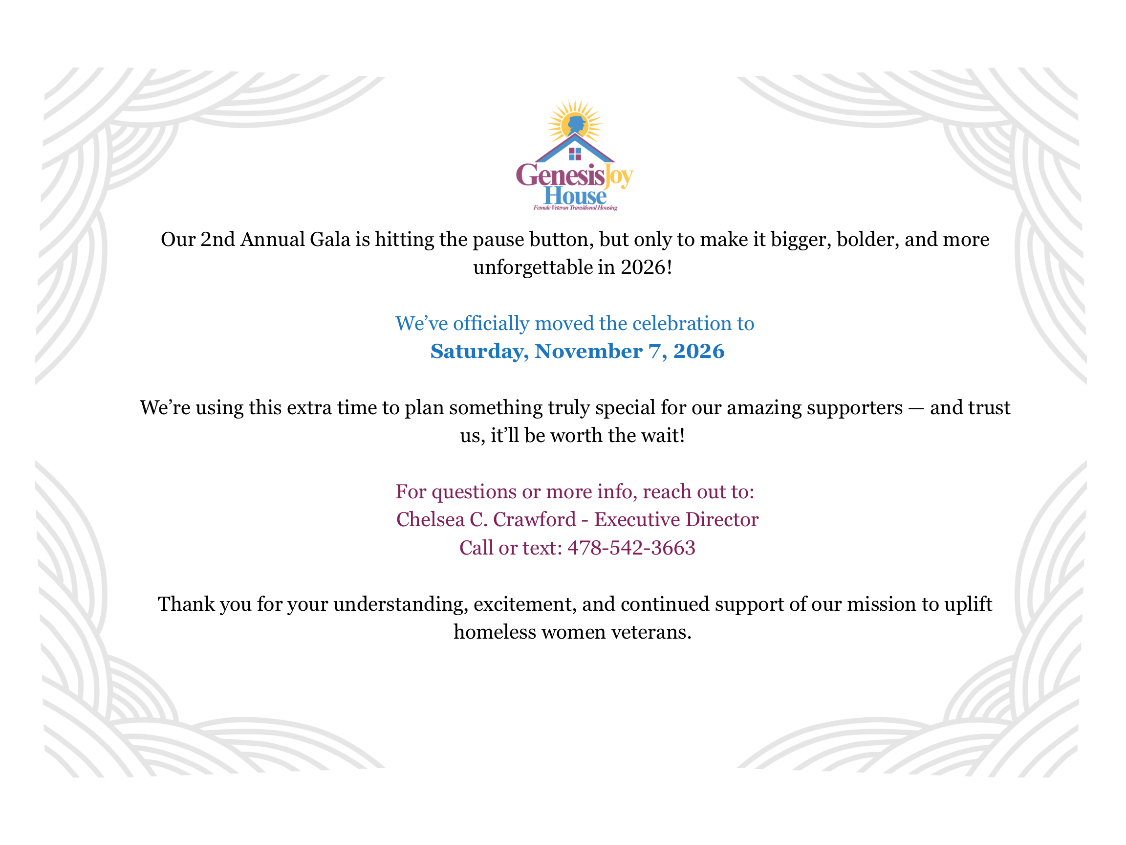 Genesis also assists homeless female veterans in taking stock of their life experiences. They are given practical and effective tools to take charge of their lives and transform their futures. We know that thousands of lives will be turned around through our programs.